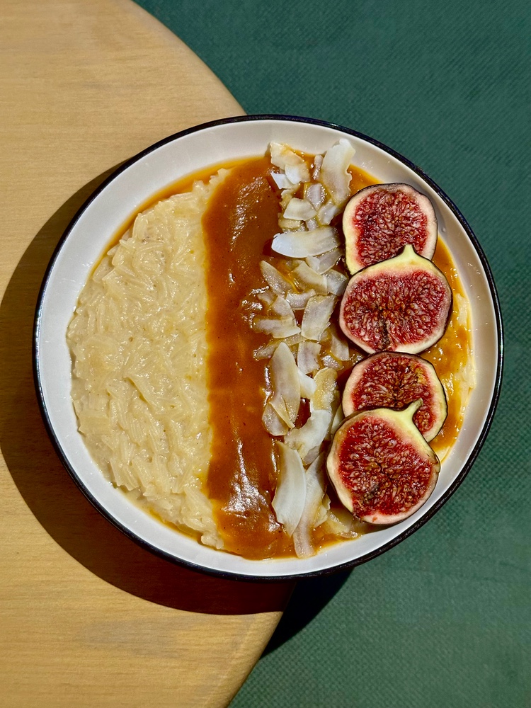 Рисова гарбузова каша з лаймом, гарбузовим кремом, кокосом і інжиром