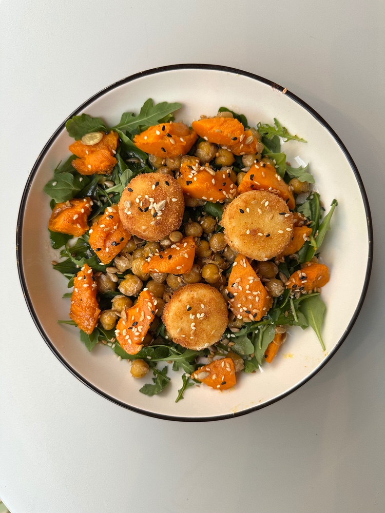 Теплий салат з нутом, гарбузом і запеченою фетою