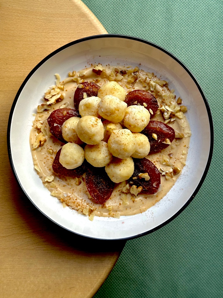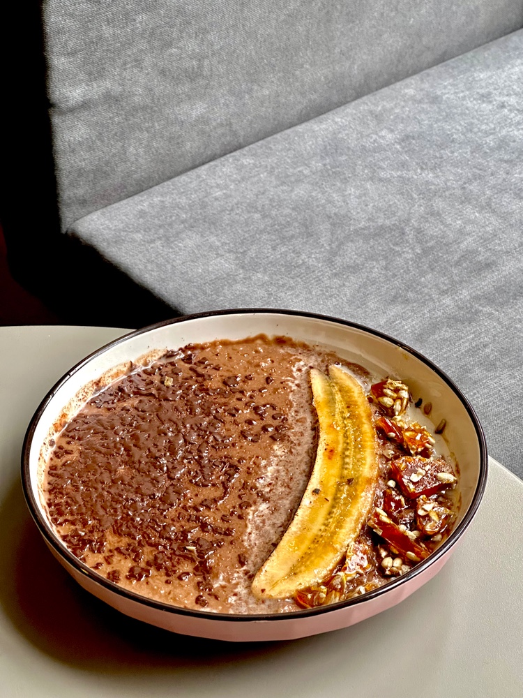 Вівсяна каша з шоколадом, карамелізованним бананом і домашніми козинаками