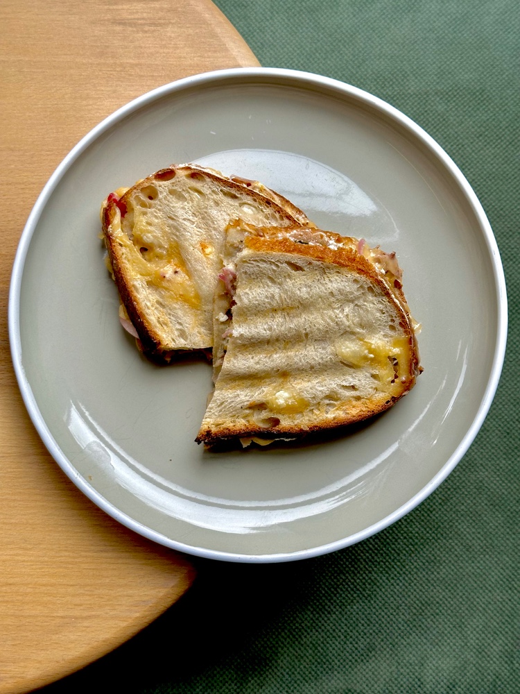 Мелт з тунцем, крем сиром, маринованною цибулькою і чеддером